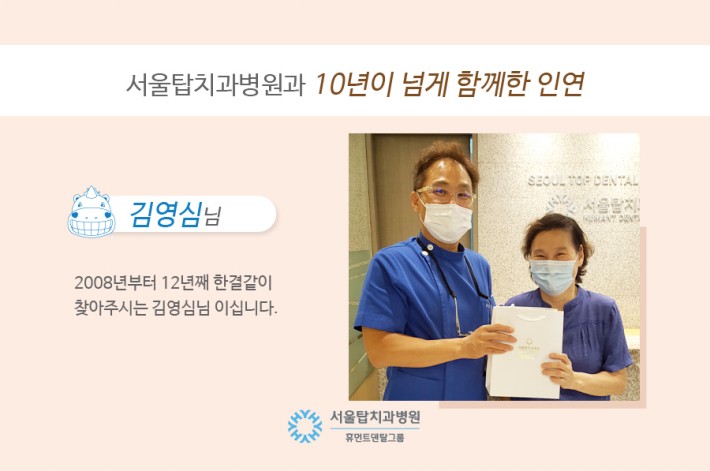 2008년부터 12년째 서울탑치과병원과 함께 하시는 김영심님