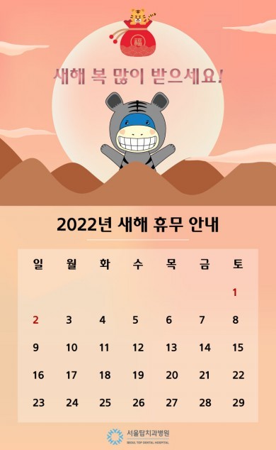 저희 서울탑치과도 2022년에 더욱 활기차고 성장하는 모습을 보일 수 있도록 준비하고 여러분을 기다리고 있겠습니다 :)