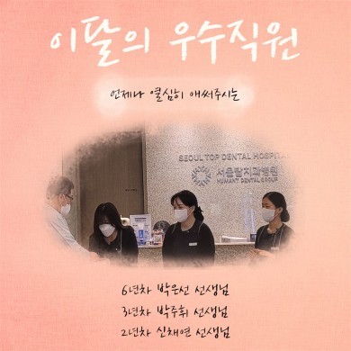 그리고 서울탑치과는 매 분기마다 우수직원을 선정하고 있는데요.
