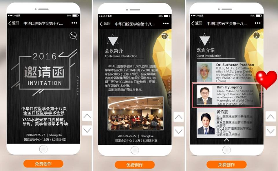 '중국구강의학회(CSA)가 주최하는 학술대회에 초정 '물방울레이저를 이용한 임플란트 수술'에 대한 강의 연좌