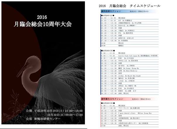 10월 29일~30일 일정으로 오사카 치과대학 스터디 그룹 Getsurinkai 10주년 기념 학술제에