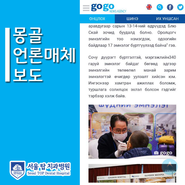 서울탑치과병원 유승윤 원장님께서 진료하는 모습이 몽골의 한 언론매체에 보도 되었습니다.