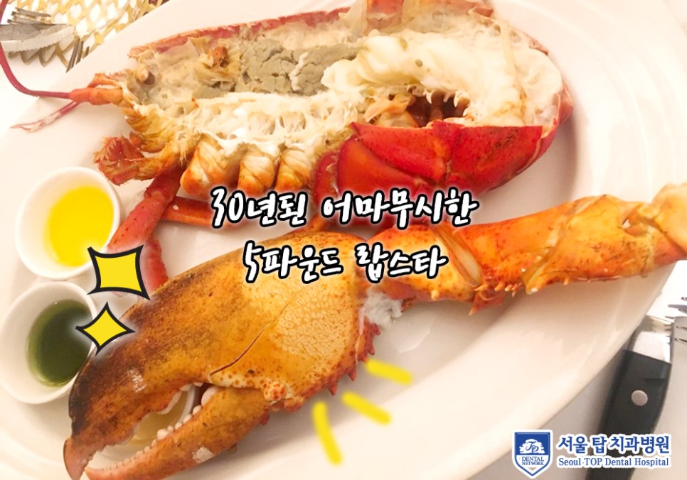 30년된 5파운드 랍스타라고 합니다. 모두 크기에 한번 놀라고, 맛에 놀라며 맛있게 먹었습니다.