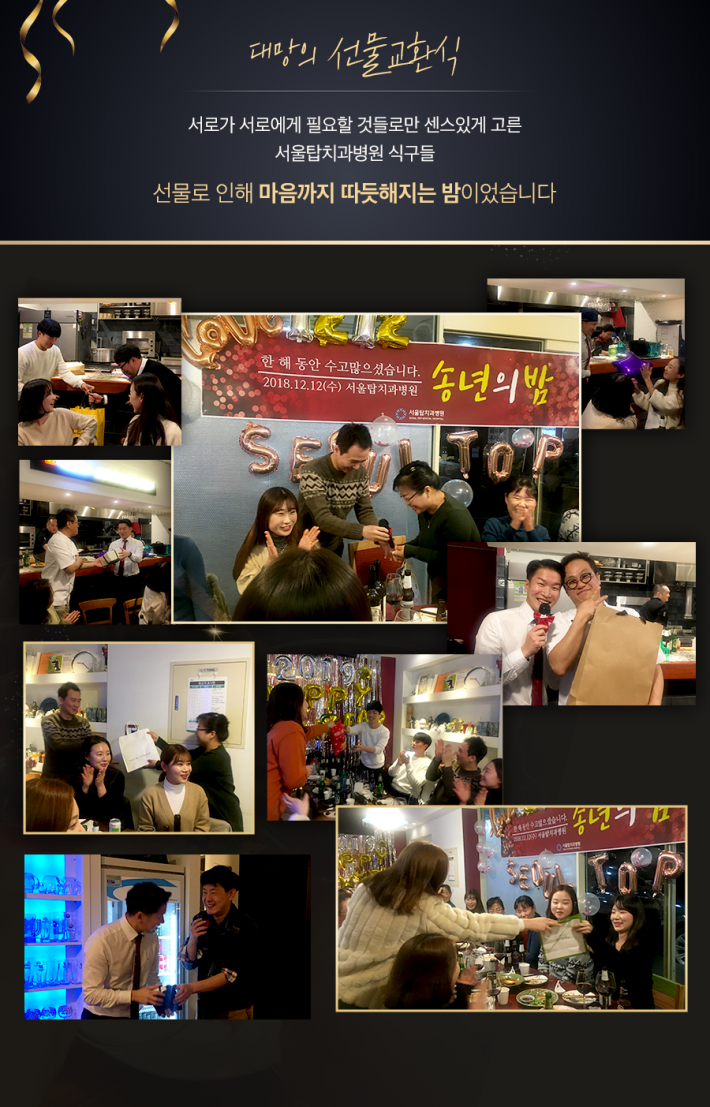 모두에게 필요한 선물만 센스있게 준비한 서울탑치과병원 식구들이었습니다.