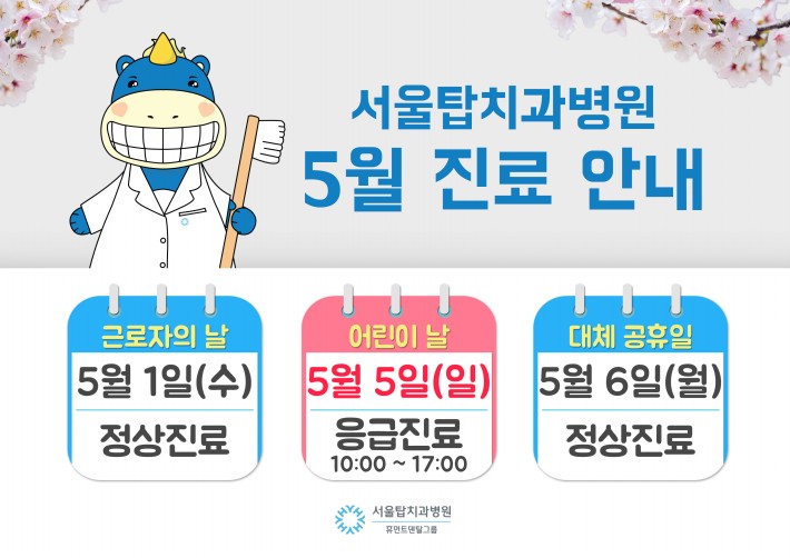 서울탑치과병원 5월 휴일 진료안내