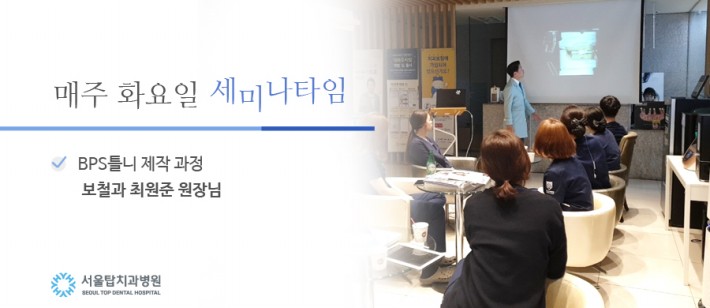 매주 화요일, 서울탑치과병원의 전 직원이 모여 세미나를 하는 날입다.