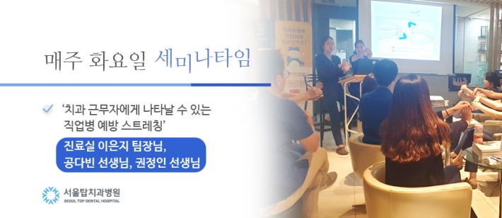 서울탑치과병원 전 직원이 모여 세미나 시간을 가졌습니다.