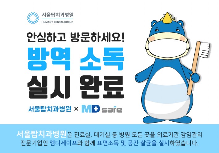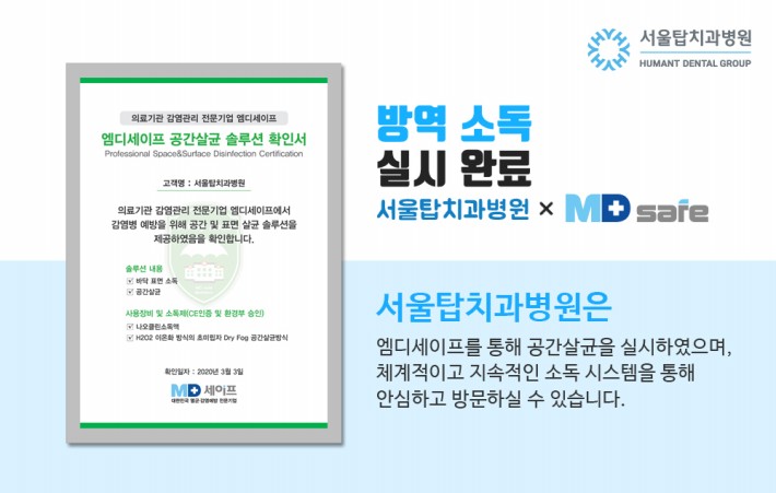 서울탑치과병원은 엠디세이프를 통해 공간살균을 실시하였으며