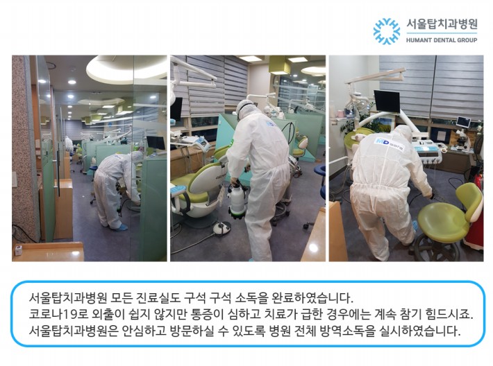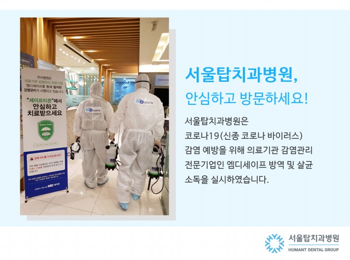 서울탑치과병원, 엠디세이프(의료기간 감염관리 전문기관)와 함께 병원 전체 방역 소독 실시!