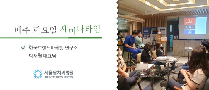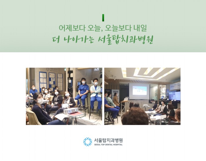 서울탑치과병원은 직원들의 발전을 위해 일주일에 1번씩 임상뿐 아니라 다양한 주제들로