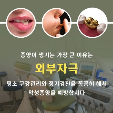 따라서 평소 건강한 구강관리와 정기검진만이 악성종양을 예방할 수 있는 효과적인 방법이란 것을 명심하시길 바랍니다.