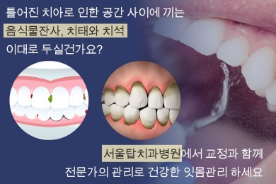 틀어진 치아는 치아 사이에 음식물의 찌꺼기와 치태 그리고 세균덩어리인 치석이 잘 생기게 하는 원인인데요.