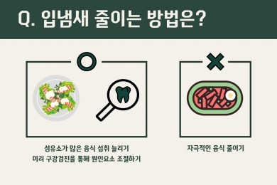 또 미리 구강 검진을 통하여 구강 내 입냄새가 날 수 있는 요인들을 조절하고 건강을 유지하는 것이 필요합니다.