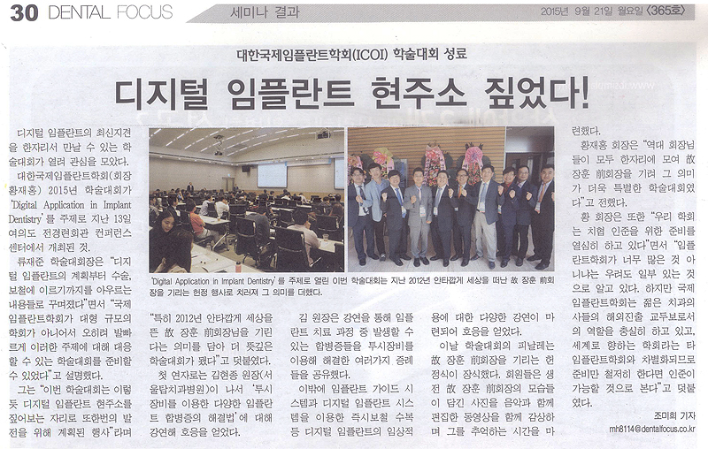 ICOI 학술대회 성료, 디지털 임플란트 현주소 짚었다! 김현종 대표원장님의 투시임플란트 강연