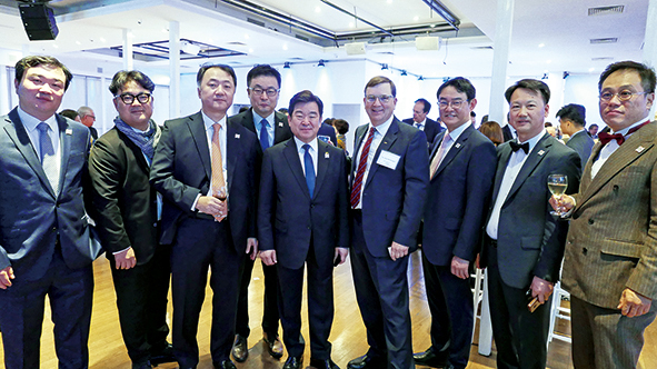 ▲ 김철수 협회장을 비롯한 한국 대표단과 캐스린 켈 FDI 회장(왼쪽에서 세 번째)