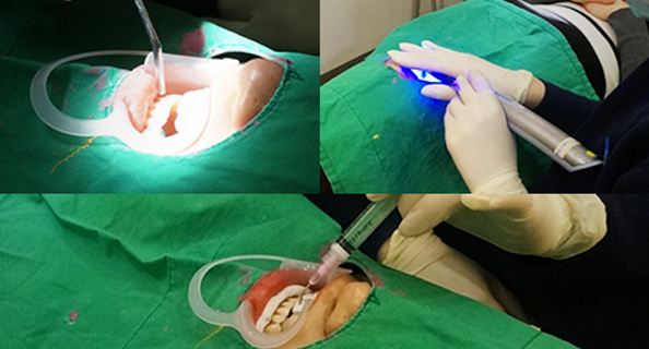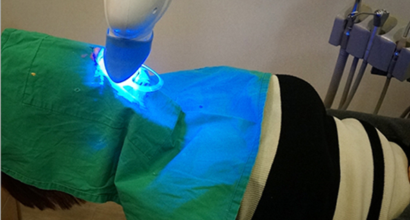 미백전 치아를 건조시킨 후 미백제를 바릅니다.