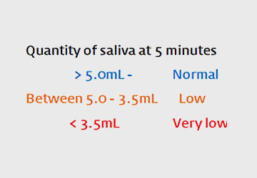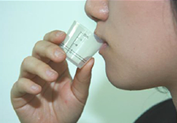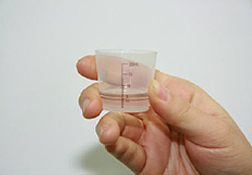 컵에 표시된 눈금으로 분비된 타액량을 계산합니다.