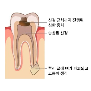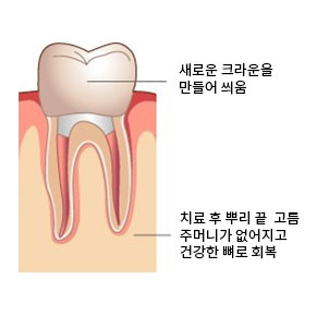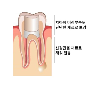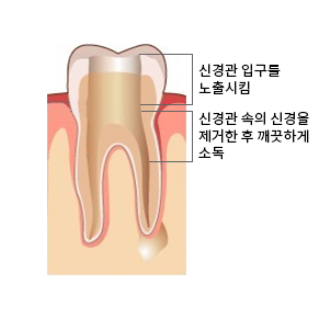 치아 내부의 치수(신경)만 제거하여 통증이나 기타 증상을 없애, 가능하면 치아를 빼지 않고