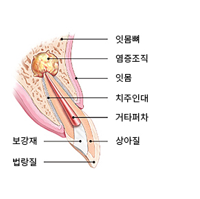 - 신경치료를 했으나 치아뿌리 끝에 염증이 생기고 잇몸에서 고름이 나오는 경우