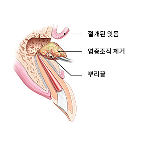 정상적으로 치료를 할 수 없을 때 잇몸을 절개하고 염증부위를 제거 후